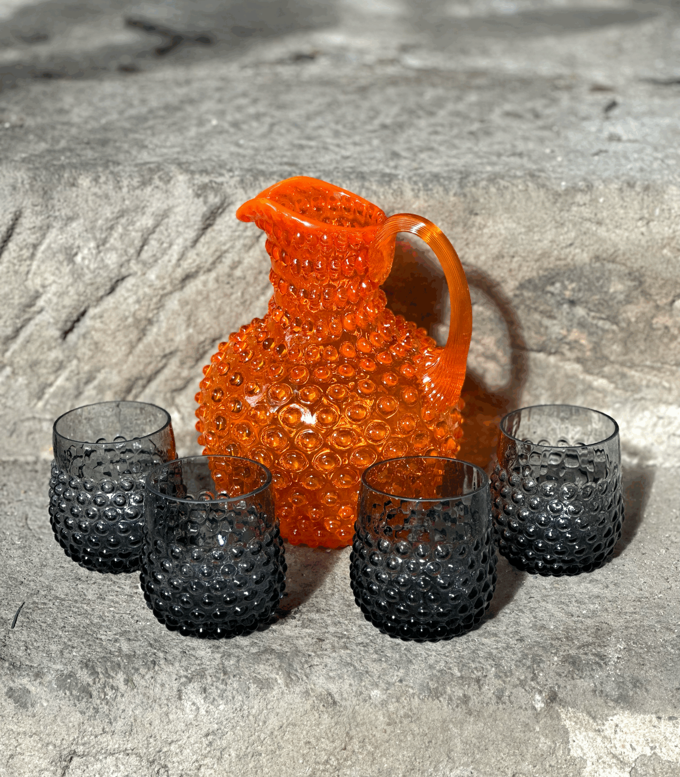 Nápojový set ananas (hobnail) 1+4 – oranžová – kouř