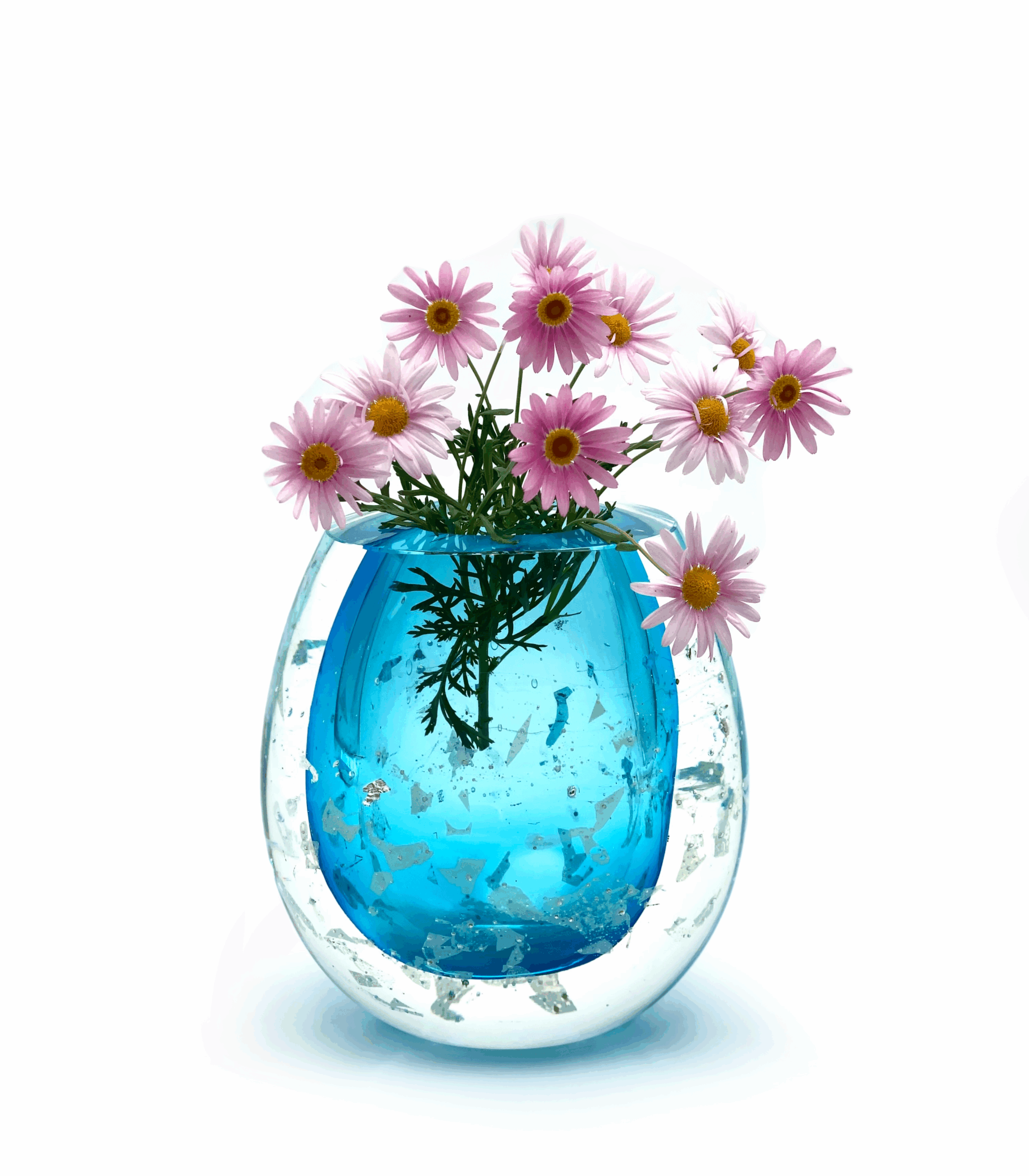 Váza z limitované edice osmi váz, kde od každé je vyroben pouze jeden kus. Nemůže se stát, že by měl někdo stejnou vázu jako vy. O design a výrobu této vázy se postarali Petr a Lukáš Červený. Majitel sklárny a jeho syn, tvoří jedinečný tým, kdy jim pod rukami vznikají naprosto unikátní a designové výtvory. Čistý křišťál ve spojení s akvamarínovým sklem a kusy pravého stříbra budou chloubou vaší domácnosti.