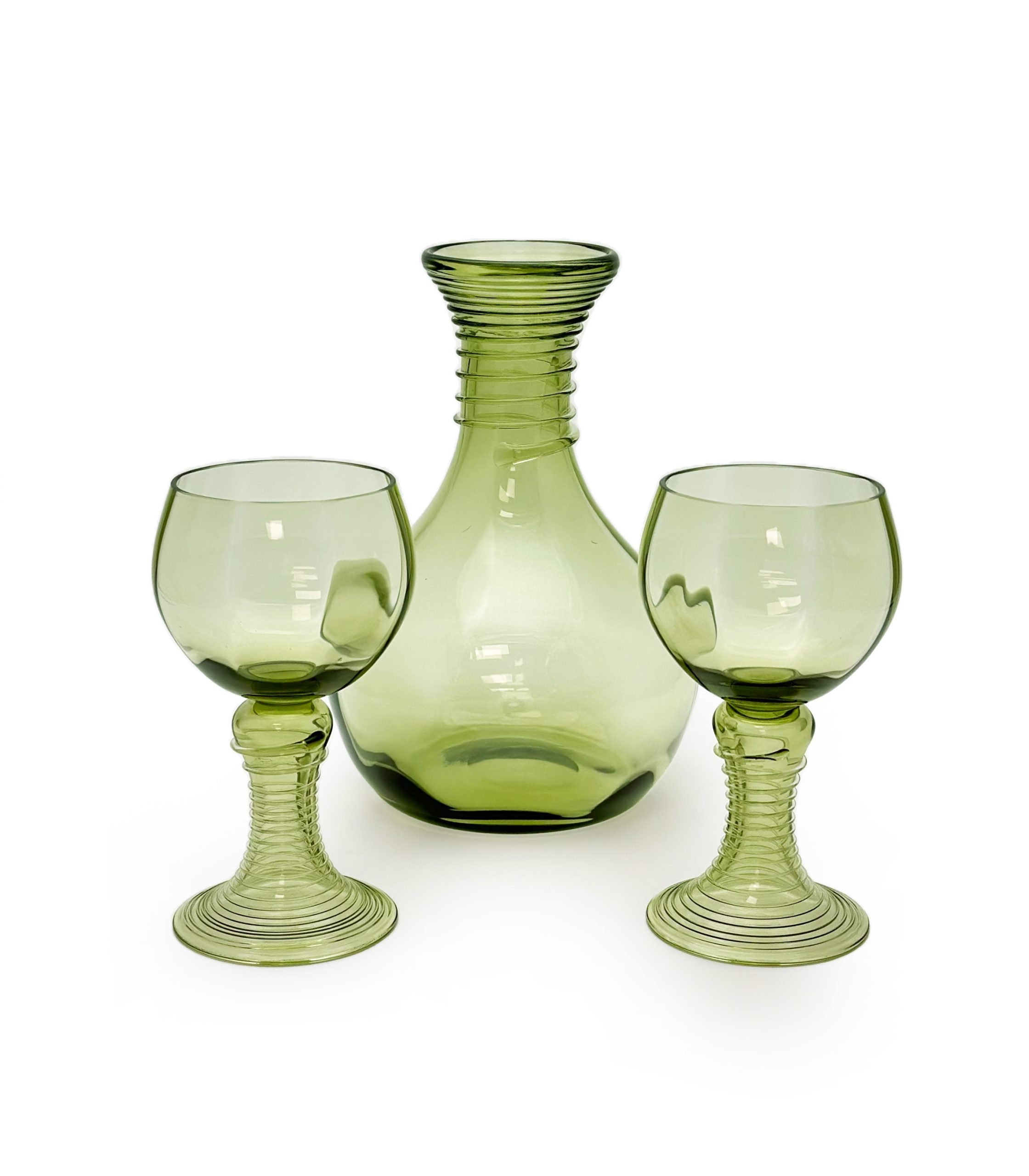 Skleněné historizující poháry (Roemer – Říman), číše, odlivky, karafy, dekantní lahve, zdobené nálepy, na víno, vodu, sklenice ruční výroby. Jedná se o typickou ruční výrobu českého skla foukaného v našem glass studiu. Sklo sodno-draselné, má velký lesk a krásný zvuk. České sklo je ve světě známe jako Bohemia glass. Lesní sklo je obvykle zbarvené do odstínu zelené oxidem železnatým. V českém sklářství dosáhla výroba lesního skla proslulosti ve 14. století. V lesních sklárnách byly začátky těžké. Způsob tavení byl v nejstarších dobách velice primitivní. Sklo, které se získávalo, bylo nazelenalé, nečisté a plné puchýřků.