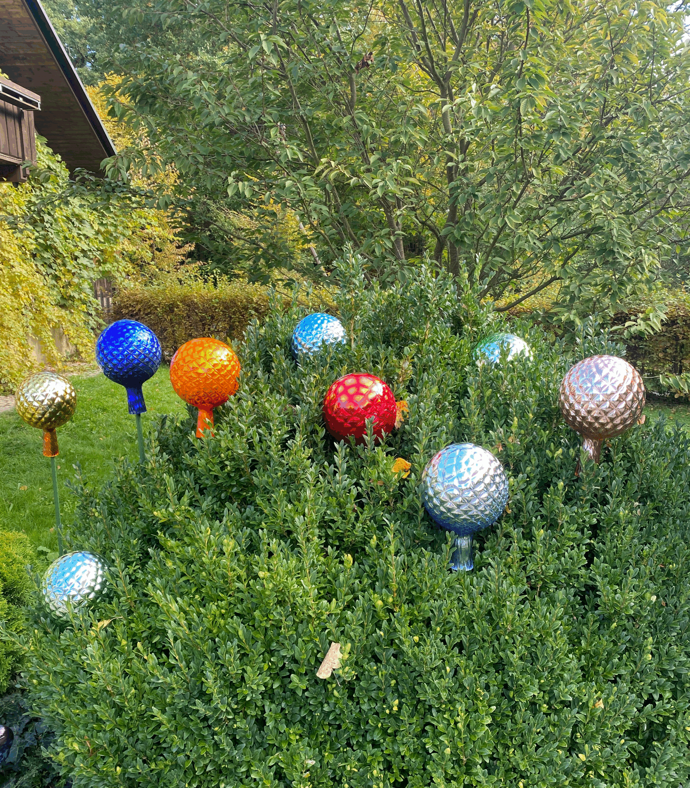 Jarní akce – objednejte si 9 kusů zahradních dekoračních koulí, 10 kus obdržíte ZDARMA. Barvy a optika skla dle našeho výběru.Ozdoba zahradní neboli plotová ozdoba je dekorace do zahrady. Rozjasní a rozveselí celou zahradu. Skoro každá babička mívala tyto ozdoby. Vyrábí se různé typy – zvířátka, listy, tyče nebo koule, různých velikostí a barevných kombinací. Některé zahradní dekorace stříbříme, čímž vznikne krásný lesk a blýskavý efekt. Otvor pro tyčku je 10 mm. Tyčka není součástí.