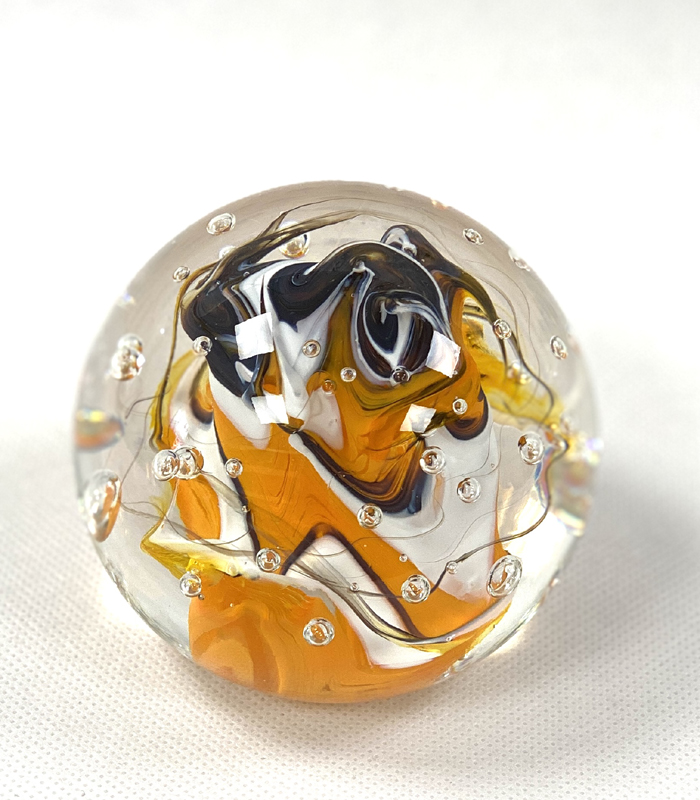 Těžítko je výrobek, který je od nepaměti oblíbeným dárkem ke všem příležitostem. A jak řekl klasik: “ Každý má své těžítko. Má magickou moc „. Svou barevností, žíháním a zamotáním barev je každé těžítko originál.