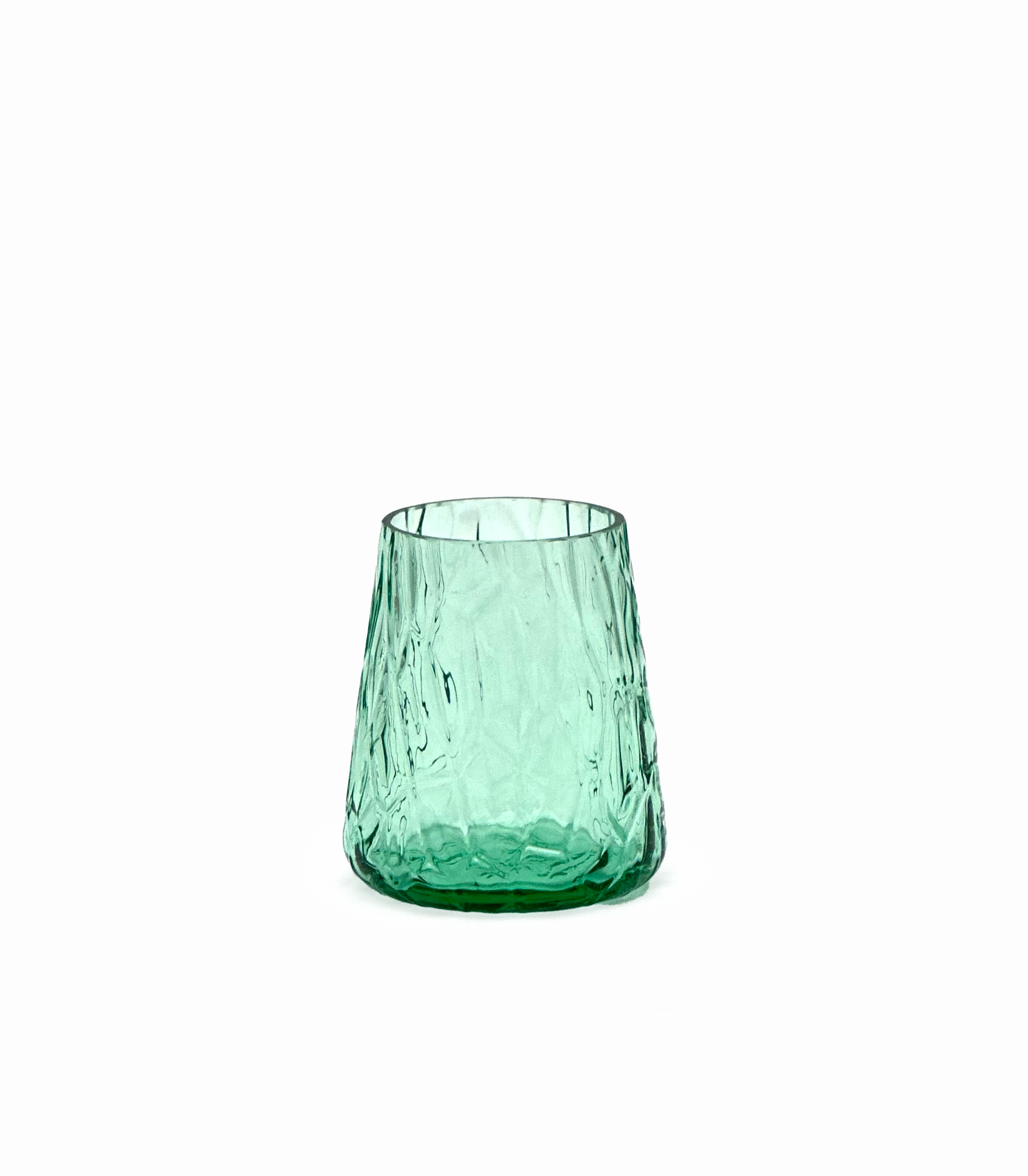 Sklenice je ručně foukaná a zdobená kraklováním – efektem, který připomíná popraskaný led nebo staré zrcadlo. Výsledkem je sklenice, která v sobě nese eleganci, tradici i špetku tajemství.
